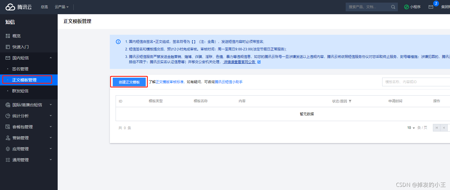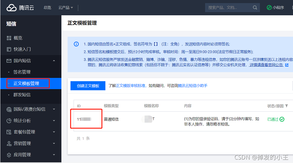 正文模板管理 —> 模板ID(重要,后面要用)