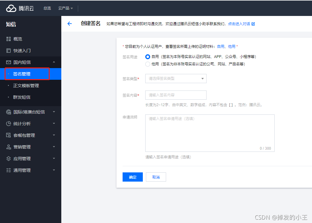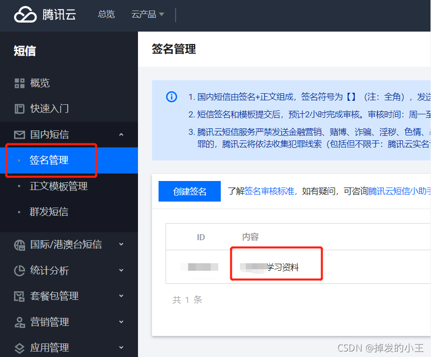 签名管理 —>完善信息(要有备案的域名或者APP)