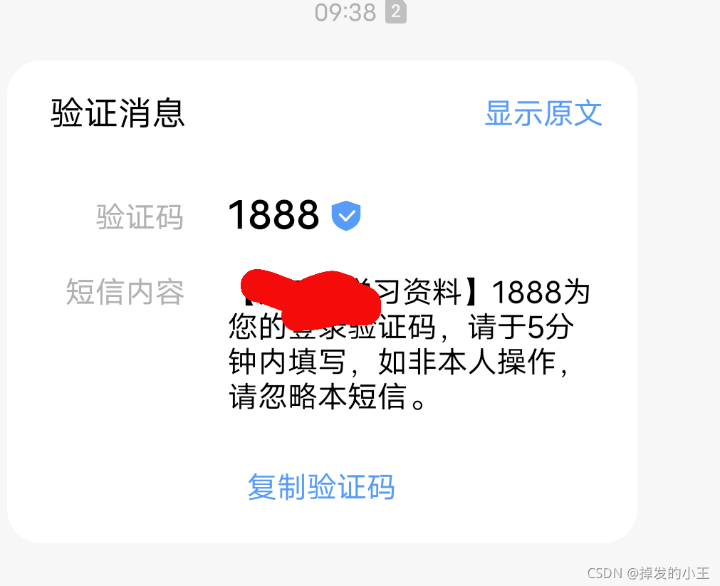 import cn.hutool.json.JSONException; import com.github.qcloudsms.SmsSingleSender; import com.github.qcloudsms.SmsSingleSenderResult; import com.github.qcloudsms.httpclient.HTTPException; import java.io.IOException; public class Message { public static void main(String[] args) { Message message = new Message(); //输入要发送的手机号 message.sendMessage("手机号码"); } // 短信应用SDK AppID --- 对应二、准备的5 int appid = 1400009099; // 1400开头 // 短信应用SDK AppKey --- 对应二、准备的5 String appkey = "9ff91d87c2cd7cd0ea762f141975d1df37481d48700d70ac37470aefc60f9bad"; // 短信模板 ID,需要在短信应用中申请 --- 对应二、准备的6 int templateId = 7839; // NOTE: 这里的模板ID`7839`只是一个示例,真实的模板ID需要在短信控制台中申请 // 签名 --- 对应二、准备的7 String smsSign = "腾讯云"; // NOTE: 这里的签名"腾讯云"只是一个示例,真实的签名需要在短信控制台中申请,另外签名参数使用的是`签名内容`,而不是`签名ID` /** * 腾讯云发送短信验证码 * @param phoneNumber 需要发送给哪个手机号码 * */ public void sendMessage(String phoneNumber) { try{ // 我们随机生成四位随机数 String verificationCode = (int) ((Math.random() * 9 + 1) * 1000) + ""; // 数组具体的元素个数和模板中变量个数必须一致 我的模板中需要填写验证码和有效时间,{1},{2} String[] params = {verificationCode , "5"}; SmsSingleSender singleSender = new SmsSingleSender(appid, appkey); SmsSingleSenderResult result = singleSender.sendWithParam("86", phoneNumber, templateId, params, smsSign, "", ""); System.out.println("result --->" + result); } catch (HTTPException e) { // HTTP 响应码错误 e.printStackTrace(); } catch (JSONException e) { // JSON 解析错误 e.printStackTrace(); } catch (IOException e) { // 网络 IO 错误 e.printStackTrace(); } } }