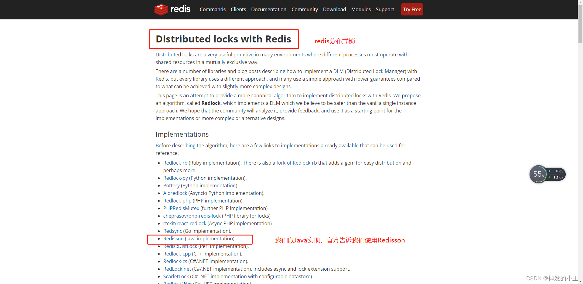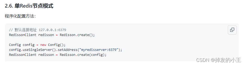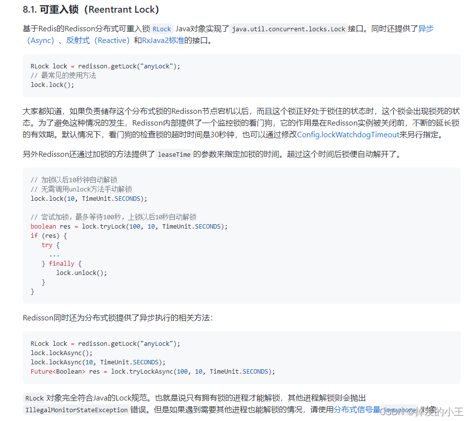 我们在实现使用Redis实现分布式锁,最开始一般使用SET resource-name anystring NX EX max-lock-time进行加锁,使用Lua脚本保证原子性进行实现释放锁。这样手动实现比较麻烦,对此Redis官网也明确说Java版使用Redisson来实现。小编也是看了官网慢慢的摸索清楚,特写此记录一下。从官网到整合Springboot到源码解读,以单节点为例,小编的理解都在注释里,希望可以帮助到大家!!