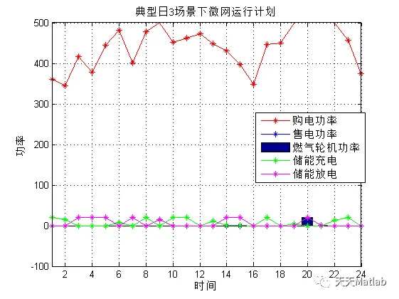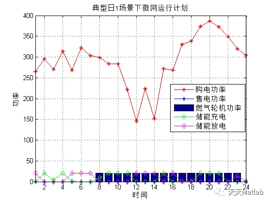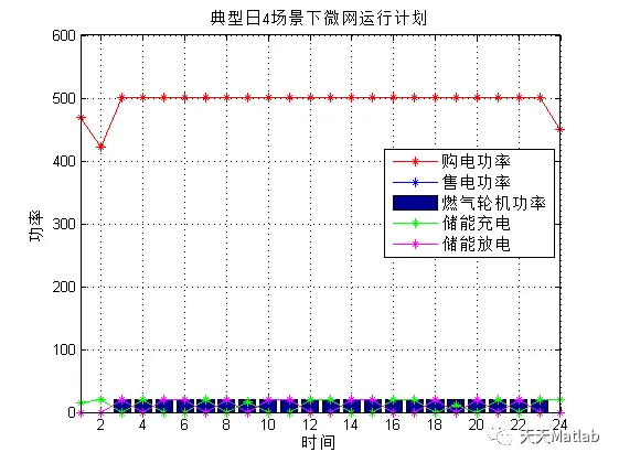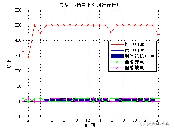 legend('购电功率','售电功率 ','燃气轮机功率','储能充电','储能放电')