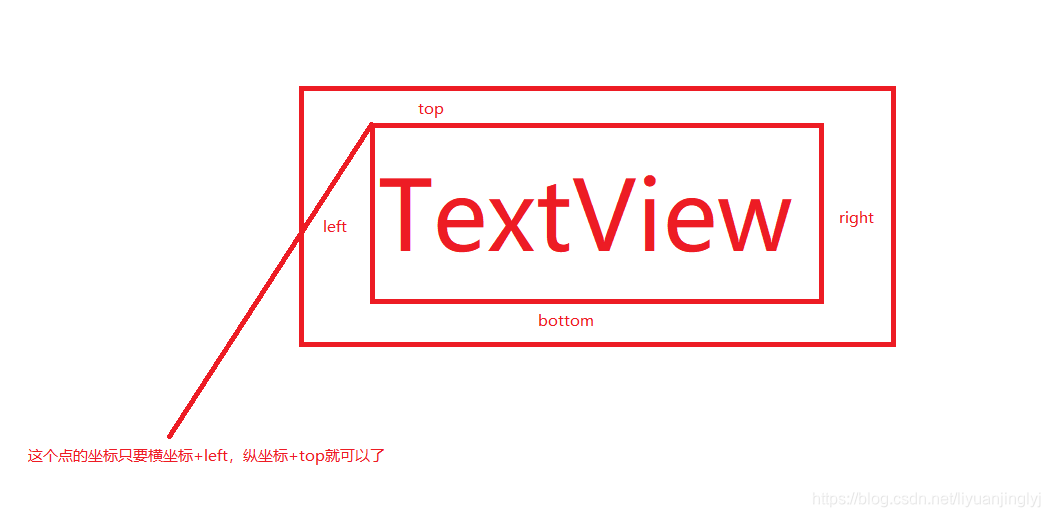 测量onMeasure()写完了,我们还需要进行布局代码的编写,因为我们在控件中加入了margin属性,所以我们需要标记当前子控件的top坐标和left坐标,为什么不需要bottom,以及right呢?因为定位一个控件是其左上角坐标(如上图所示,看完就会明白),具体的代码如下: