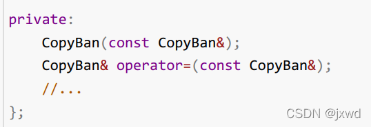 这样的话,如果有子类想要去继承,那么就无法去实例化对象。因为我们说过,子类在初始化的时候会调用父类的拷贝构造,而父类的拷贝构造如果是私有的话,子类是无法进行访问的。