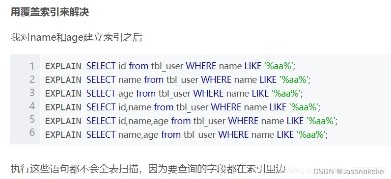 尽量使用覆盖索引(只访问索引的查询(索引列和查询列一致)),减少select *
