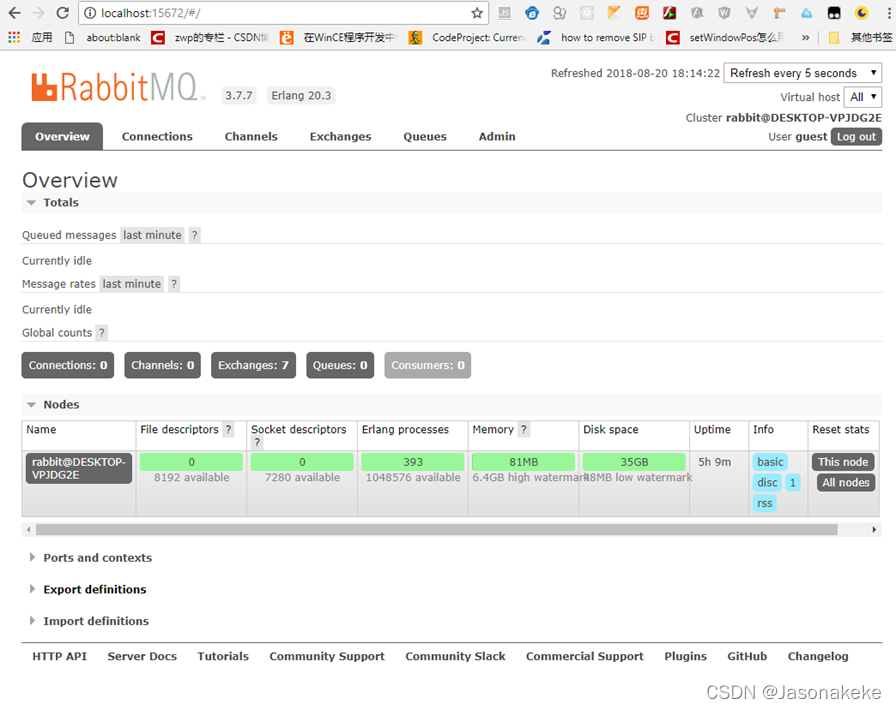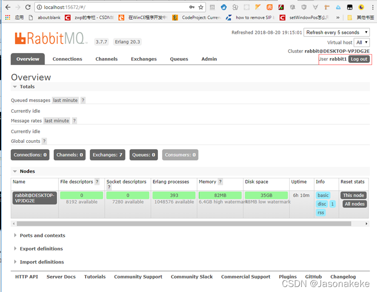 有了插件 rabbitmq_management 很多事情就可以在这个可视化插件中来完成了。
