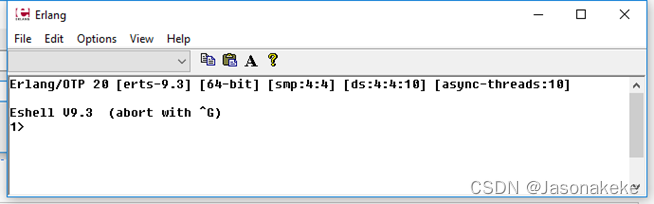 在开始菜单查找 Erlang,点击启动 打开如下界面,那么 Erlang 就安装成功了。接下来就安装 RabbitMQ。