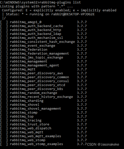 我们用命令查看一下 RabbtitMQ 的所有插件: