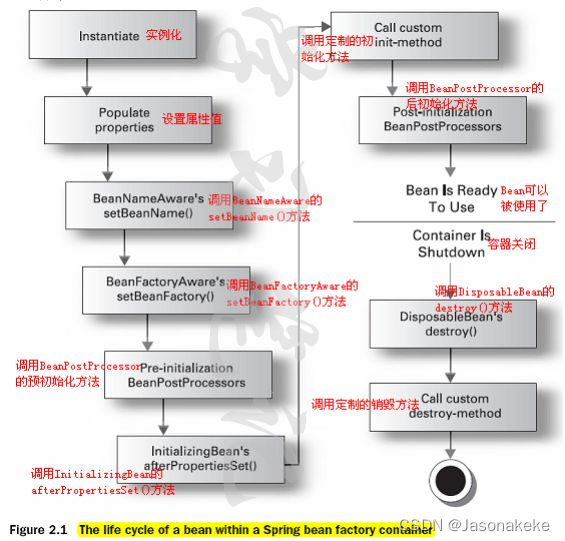 最后,如果这个Bean的Spring配置中配置了destroy-method属性,会自动调用其配置的销毁方法。
