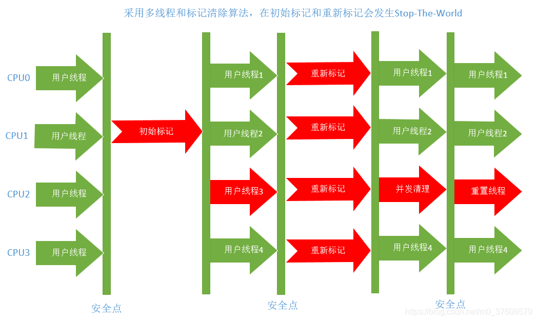 - 最终标记(Remark),STW,标记再并发标记过程中产生的垃圾。