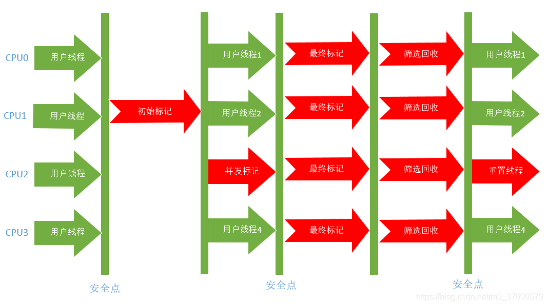 - 但在单个CPU环境中,不会比Serail收集器有更好的效果,因为存在线程交互开销。