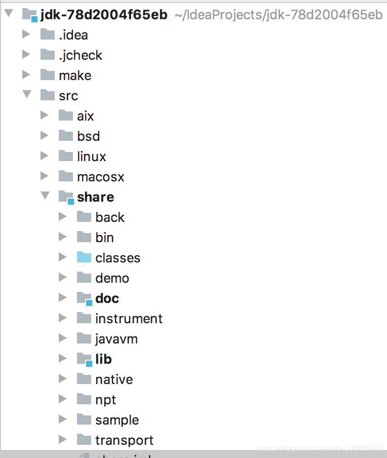 包含了 JDK 的实现,实现源码位于 jdk/src/share 目录,其目录结构如下图所示: