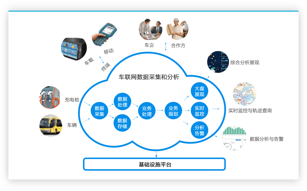 - 数据监控:利用大盘展现,看到车辆的事实情况;对车辆运行轨迹进行实时监控;实时数据分析和告警等。这是传统报表做不到的。