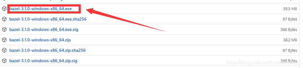 前往【https://github.com/bazelbuild/bazel/releases】下载bazel-3.1.0-windows-x86_64.exe,如下所示: