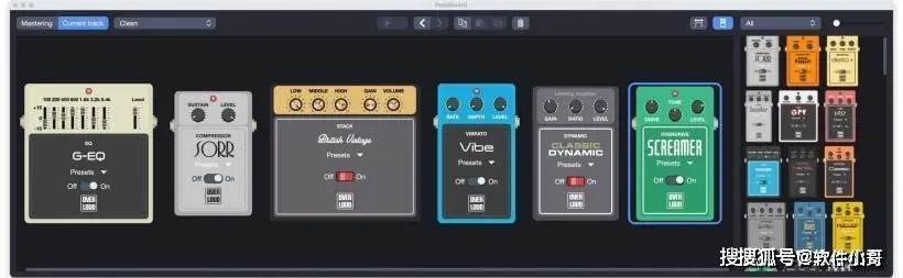 5、新增效果器链了,没错各种经典单块都在里面,该有的功能终于有了,可惜我已经不玩Guitar Pro了。