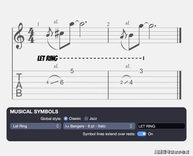 9、可以修改例如Let Ring、Slap、Pop这些技法的字体。
