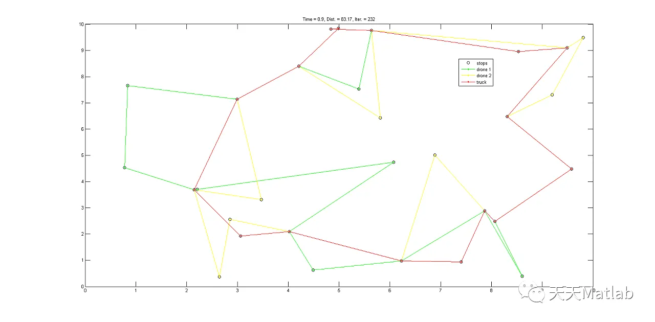 % There is one truck and two drones in this scenario (d2TSP).
