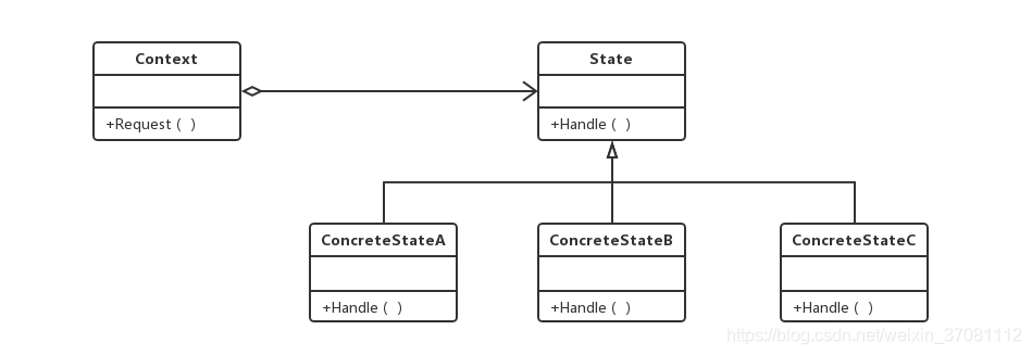 3、将所有与某个状态有关的行为放到一个类中,并且可以方便地增加新的状态,只需要改变对象状态即可改变对象的行为。