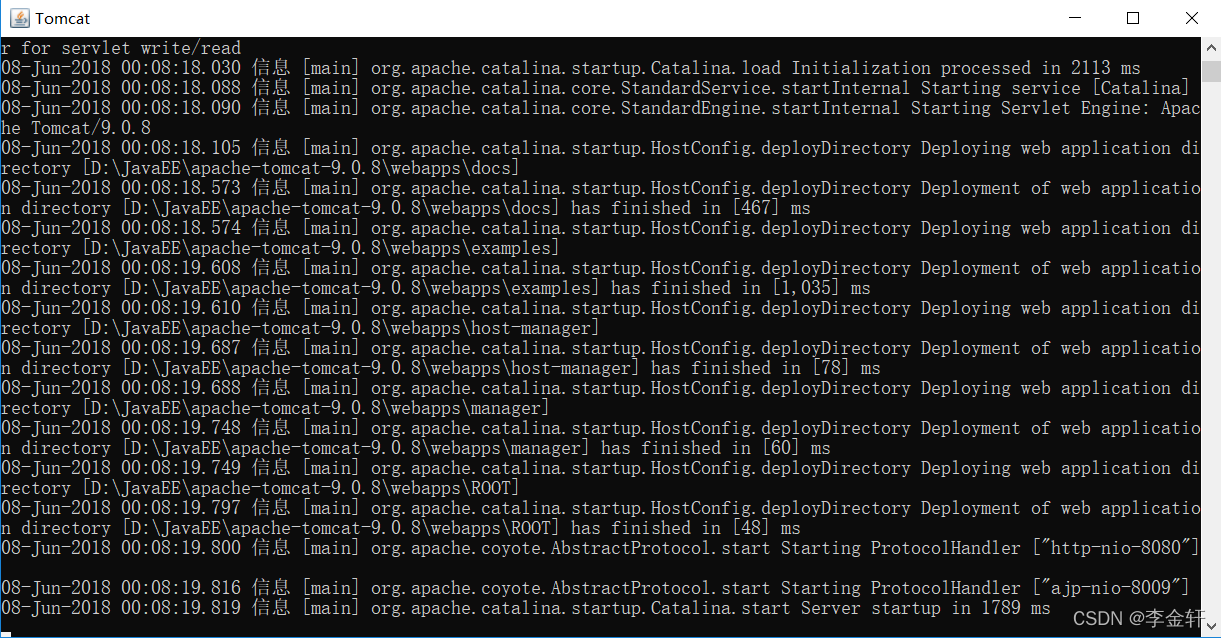 进入tomcat下的bin目录(本人电脑的路径为D:\JavaEE\apache-tomcat-9.0.8\bin),执行“service.bat install” 。(附:service卸载命令:service.bat remove)