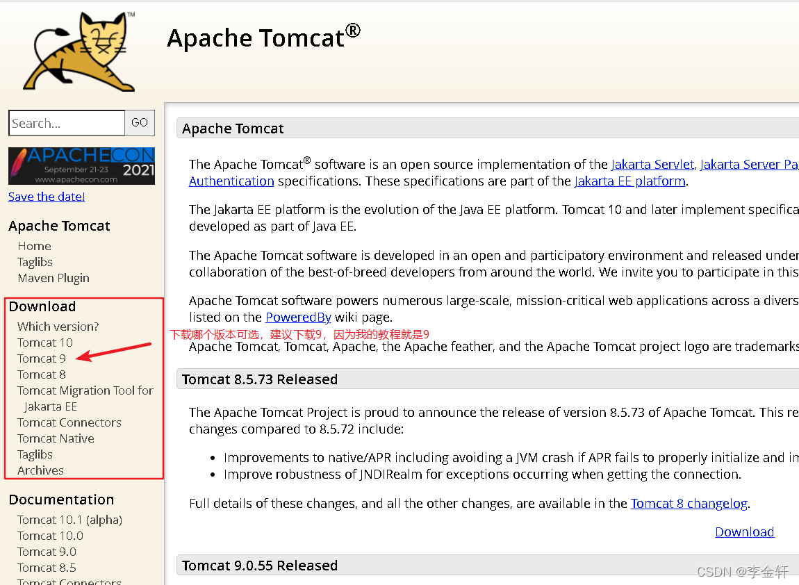 安装包下载地址:https://tomcat.apache.org/