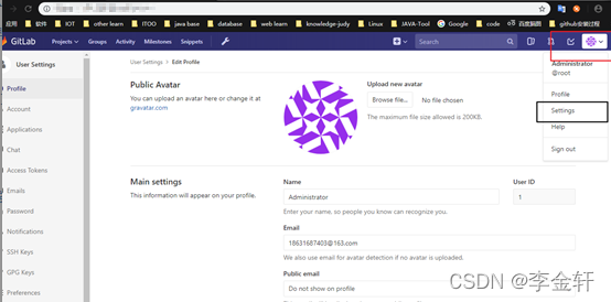 开发人员在自己的电脑上配置好公钥后,根据公钥内容中的邮箱地址,注册gitlab账号(也就是自己在步骤一的邮箱地址),