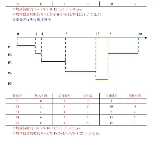 系统中有五个进程P1,P2,P3,P4,P5,如表。规定进程的优先数越小优先级越高。试描述在采用下述内种调度算法时,各个进程运行过程,并计算采用每种算法的进程平均周转时间。假设忽略进程的调度时间。