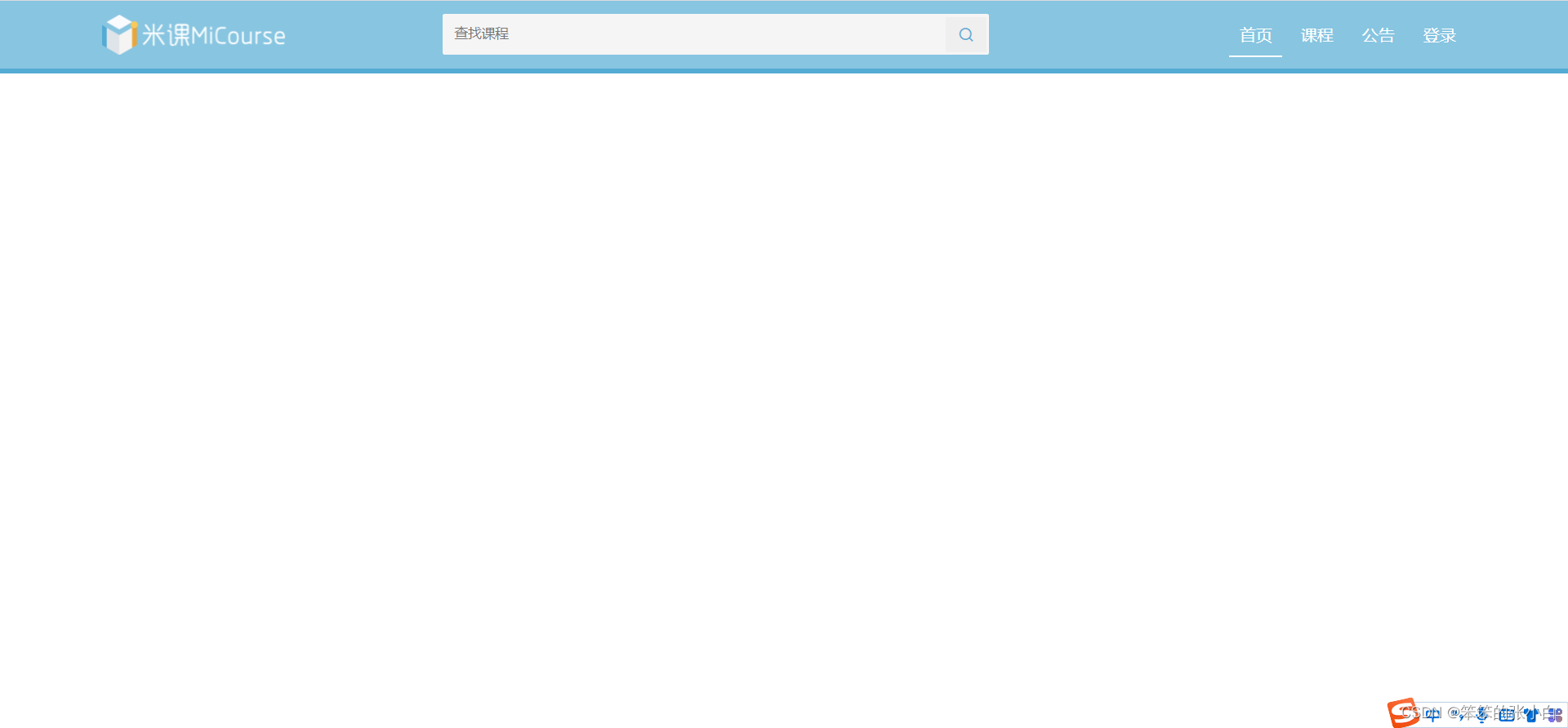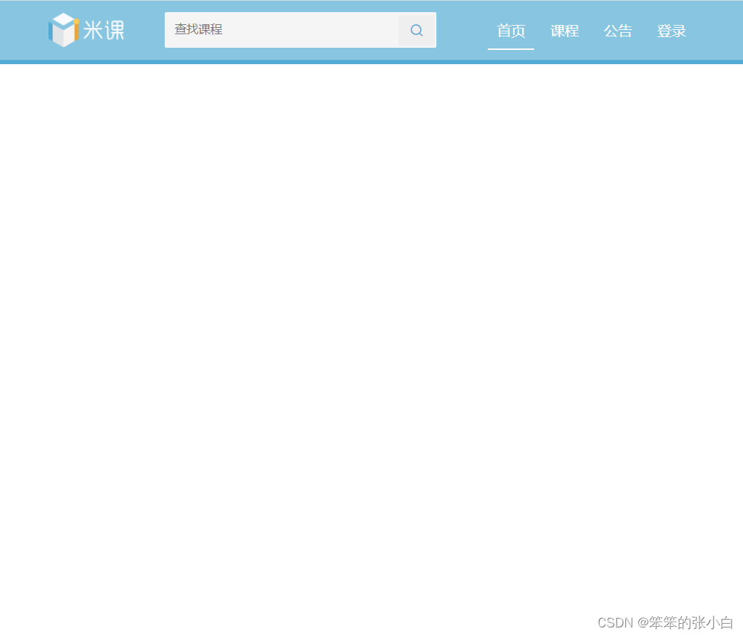 <!DOCTYPE html> <html lang="en"> <head> <meta charset="UTF-8"> <meta http-equiv="X-UA-Compatible" content="IE=edge"> <meta name="viewport" content="width=device-width, initial-scale=1.0"> <title>米课</title> <link rel="stylesheet" href="../css/reset.css"> <link rel="stylesheet" href="../css/mike.css"> <link rel="stylesheet" href="../css/iconfont/iconfont.css"> </head> <body> <!-- 导航开始 --> <div class="nav"> <div class="wrap"> <div class="logo"></div> <div class="search"> <form> <input class="text-input" type="text" placeholder="查找课程"> <button class="iconfont"></button> </form> </div> <div class="nav-bar"> <ul> <li><a href="#" class="nav-bar-active">首页</a></li> <li><a href="#" >课程</a></li> <li><a href="#" >公告</a></li> <li><a href="#" >登录</a></li> </ul> </div> </div> </div> <!-- 导航结束 --> </body> </html>