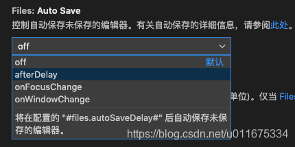 2)afterDelay —— 将在配置的 "#files.autoSaveDelay#" 后自动保存为保存的编辑器: