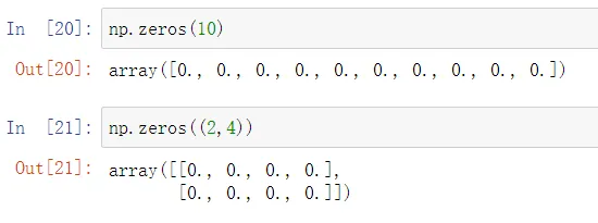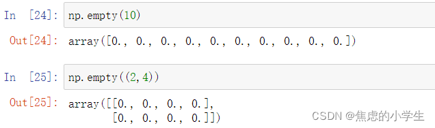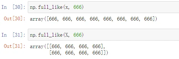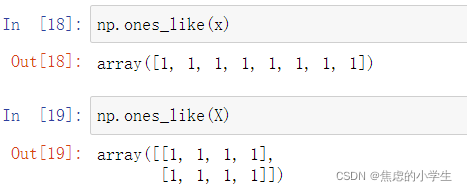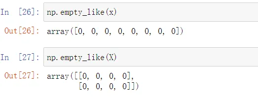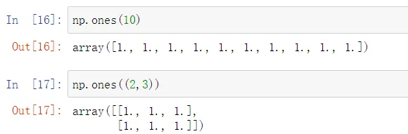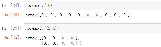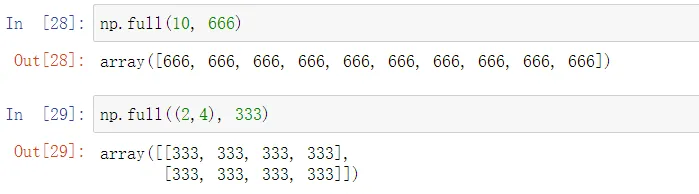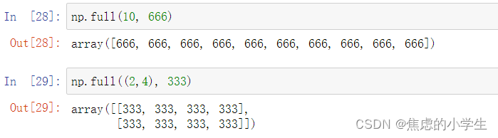 使用预定函数arange、ones/ones_like、zeros/zeros_like、empty/empty_like、full/full_like、eye等函数创建