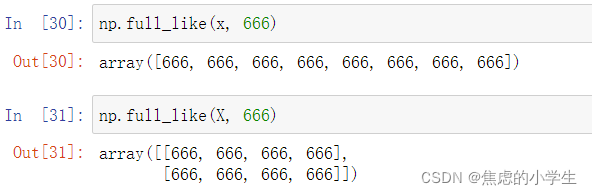 以下除了arrange和random,基本都是xx:生成xx类型数组;xx_like(a)模仿数组a生成xx类型数组。