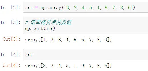 即np.sort不改变操作的数组返回一个新数组,array.sort改变操作的数组。