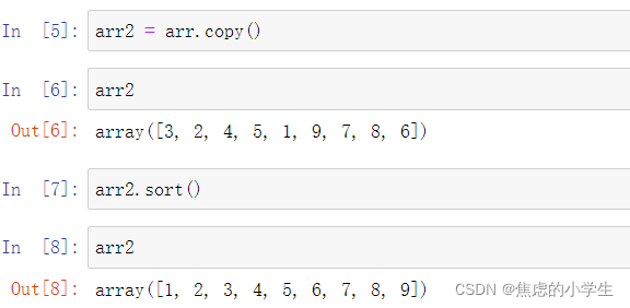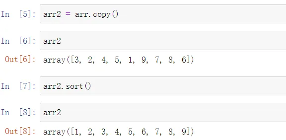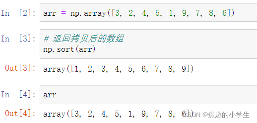 个人喜欢用np.sort(),就算需要改变数组本身时,直接以arr = np.sort(arr)这种形式写就行了,要会灵活运用。