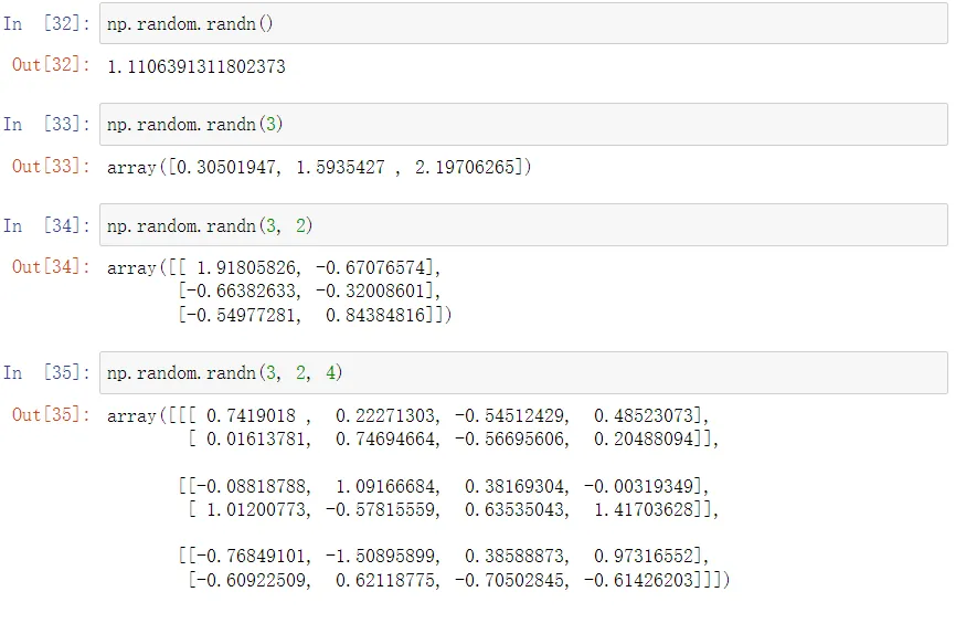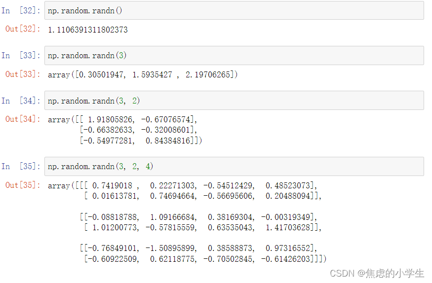 randn(d0, d1, ..., dn) 随机数会在后面讲解