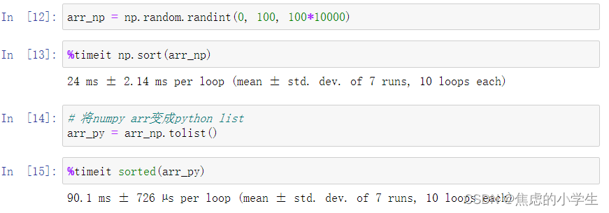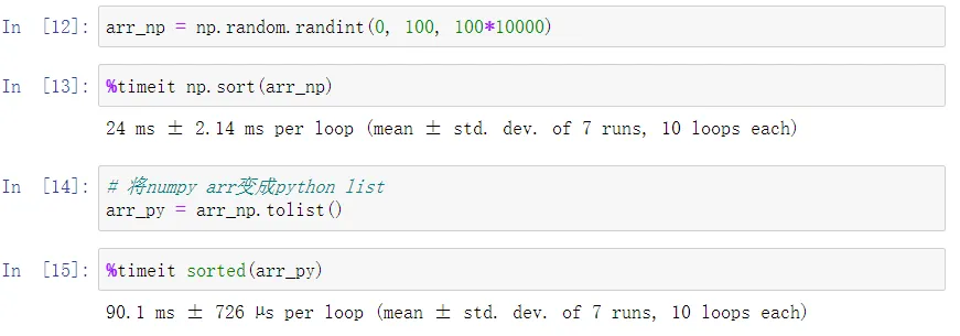 但这些排序的内部都是基于冒泡排序完成的。而我们的np.sort则是快速排序。