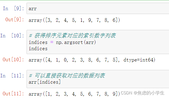 numpy.argsort:间接排序,返回的是排序后的数字索引