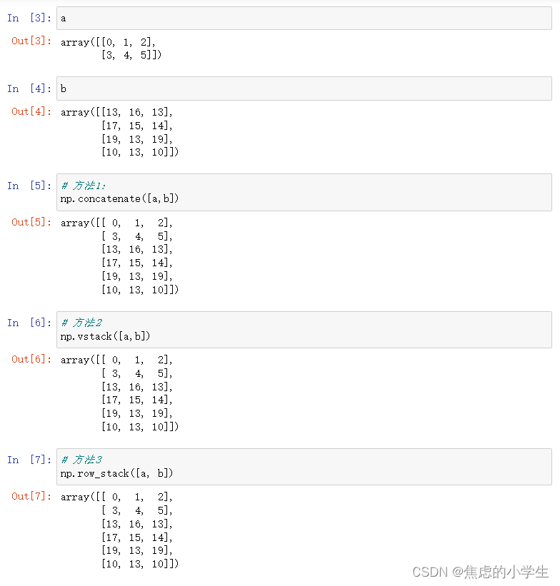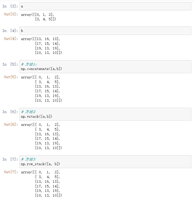 np.vstack或者np.row_stack(array_list):垂直vertically、按行row wise进行数据合并