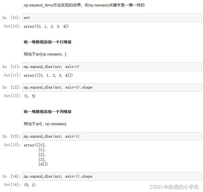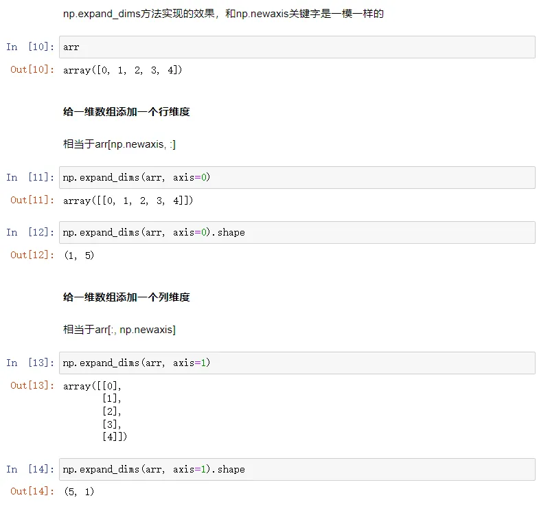 - np.expand_dims(arr, axis):方法,和np.newaxis实现一样的功能,给arr在axis位置添加维度