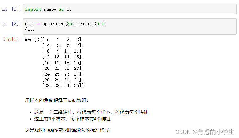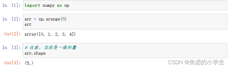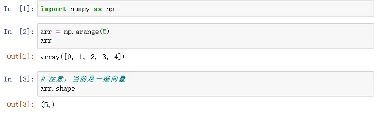 原始数组:一维数组arr=[1,2,3,4],其shape是(4, ),取值分别为arr[0],arr[1],arr[2],arr[3]