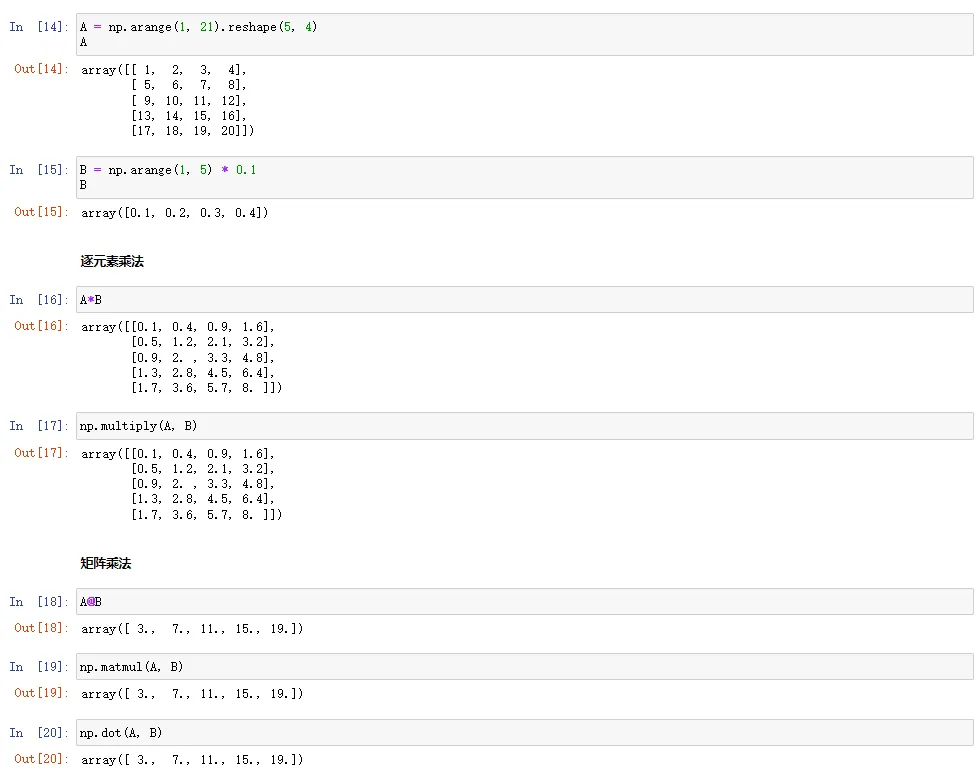 按照两个相乘数组A和B的维度不同,分为以下乘法: