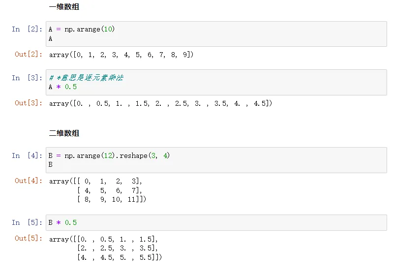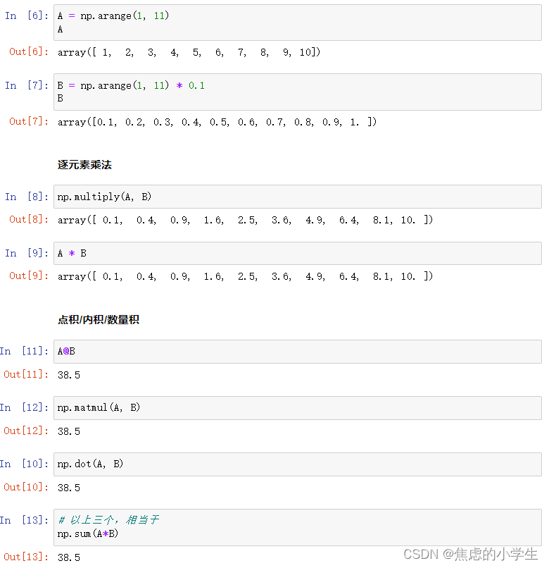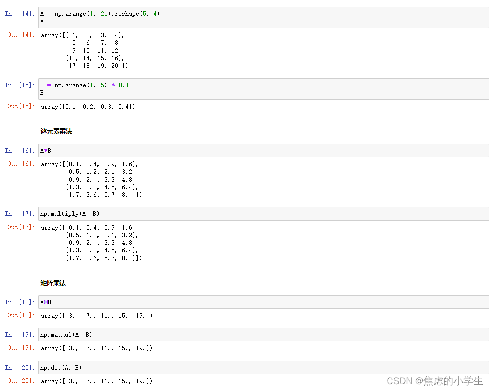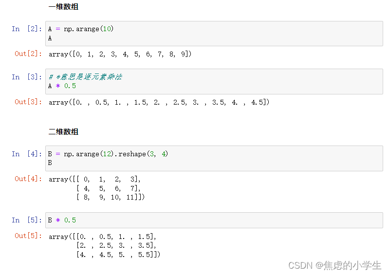 *符号或者np.multiply:逐元素乘法,对应位置的元素相乘,要求shape相同