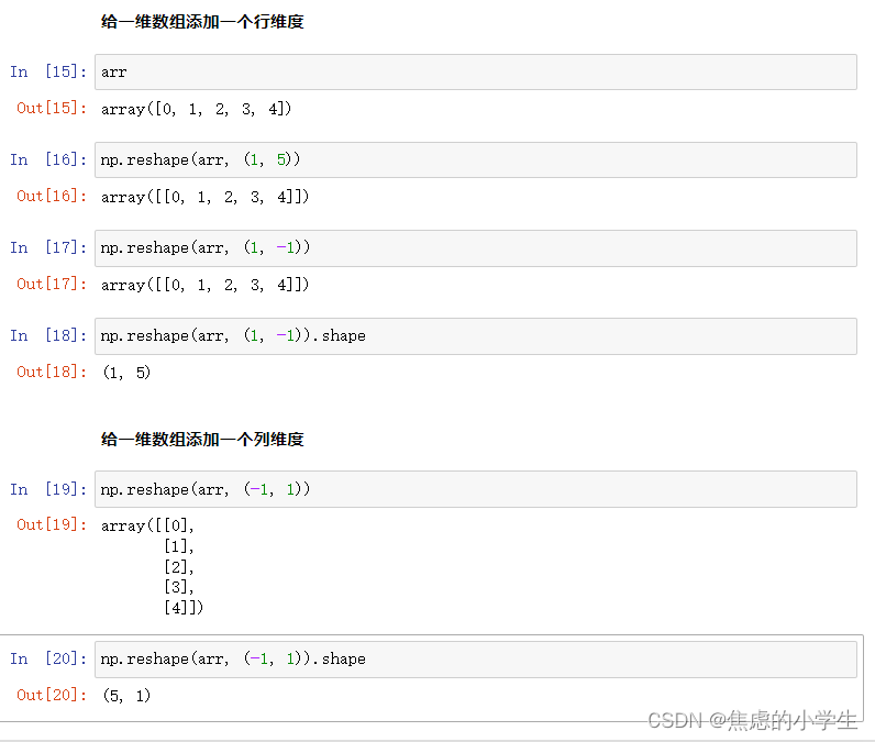 在不改变数据的情况下,添加数组维度;(注意观察这个例子,维度变了,但数据不变)