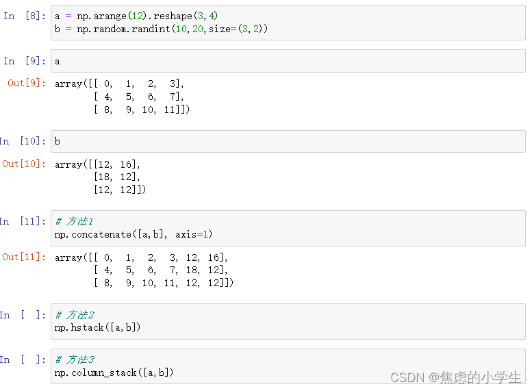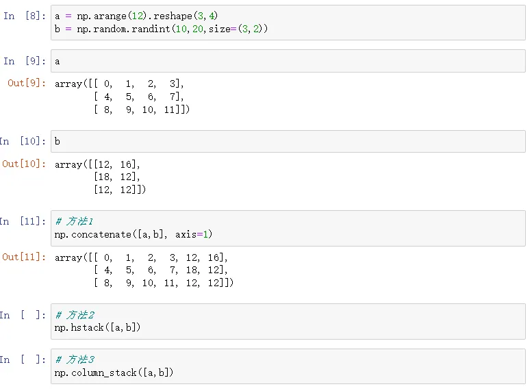 np.hstack或者np.column_stack(array_list):水平horizontally、按列column wise进行数据合并1. 添加多行