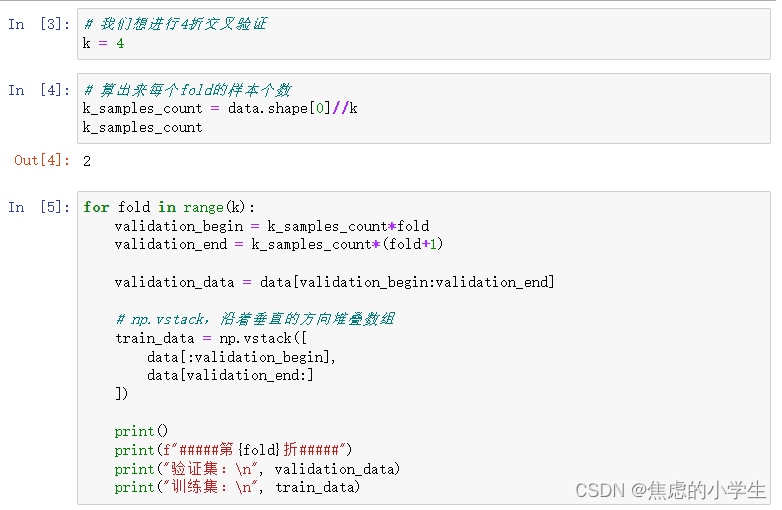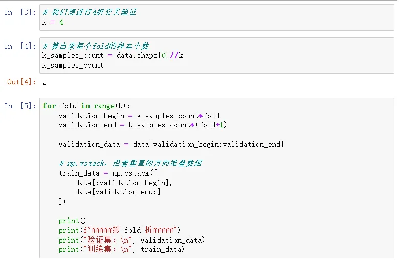 K折验证(K-fold validtion)将数据划分为大小相同的K个分区。