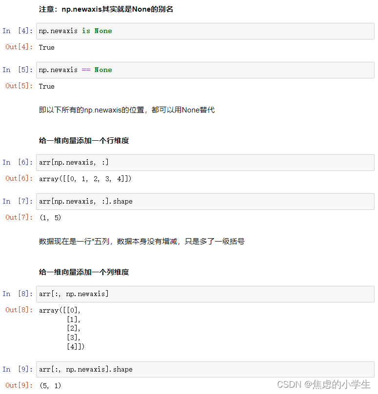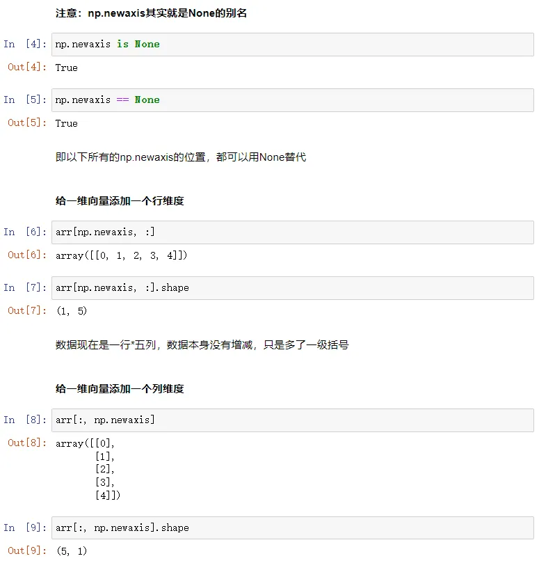 - np.newaxis:关键字,使用索引的语法给数组添加维度