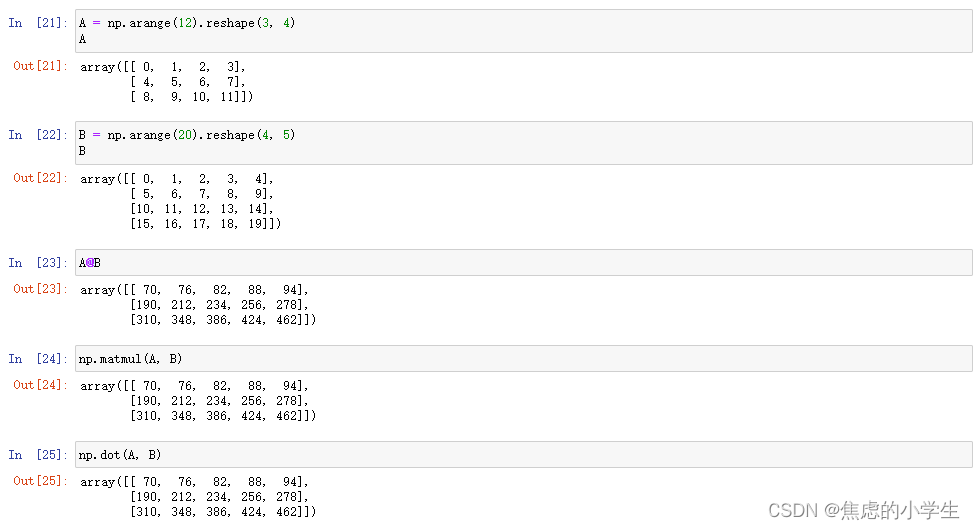 @符号或者np.matmul:矩阵乘法,形状要求满足(n,k),(k,m)->(n,m)