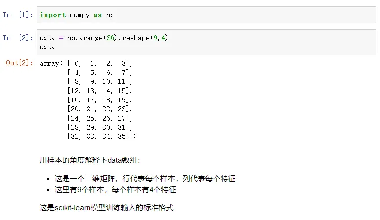 变形数组:二维数组arr[[1,2,3,4]],其shape实(1,4), 取值分别为a[0,0],a[0,1],a[0,2],a[0,3]