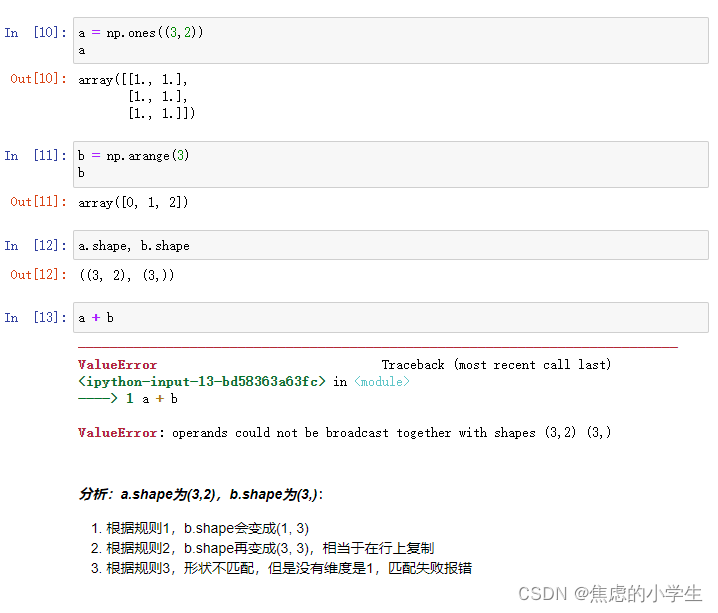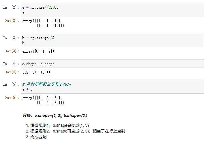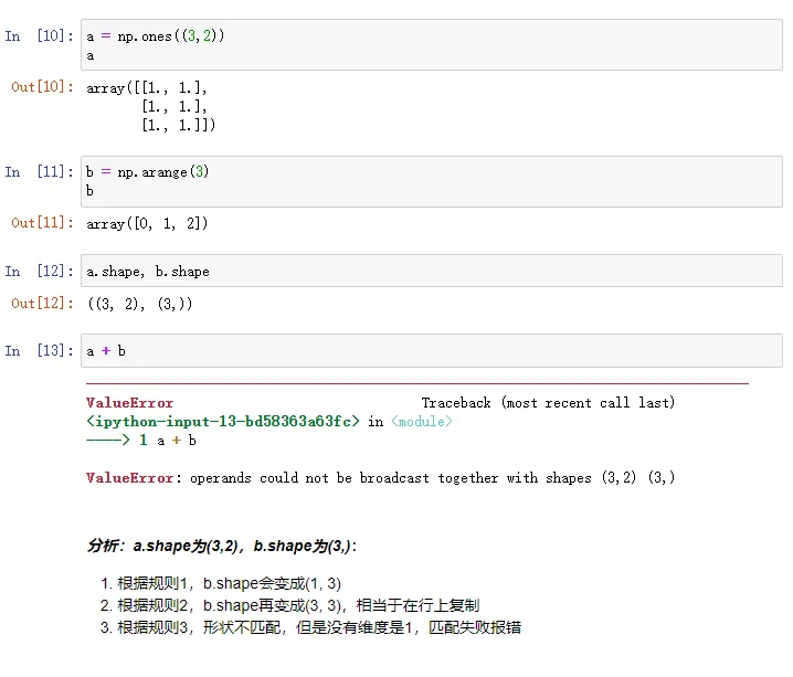 3. 如果shape的维度不匹配,但是没有任何一个维度是1,则匹配失败引发错误;