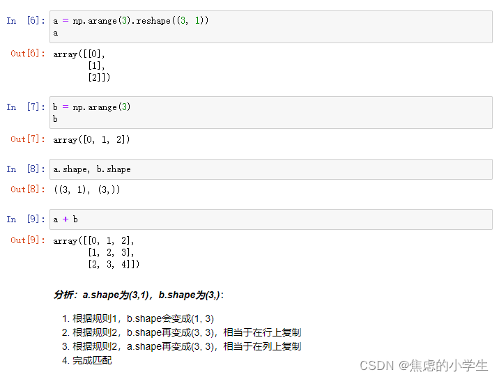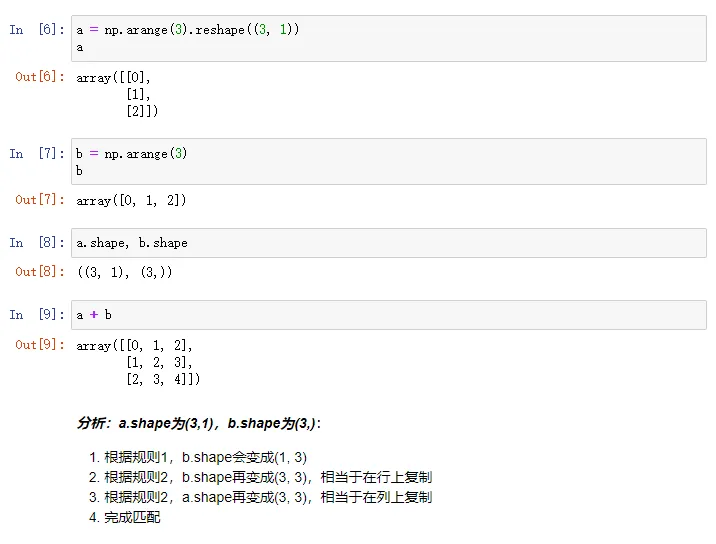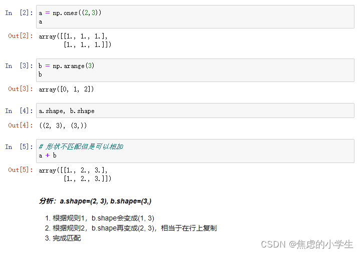 2. 如果shape的维度不匹配,但是有维度是1,那么可以扩展维度是1的维度匹配另一个数组;