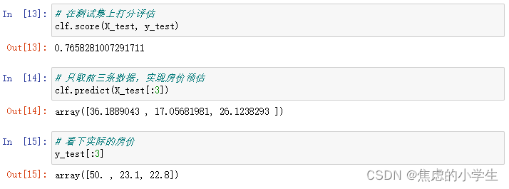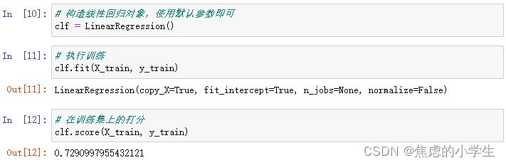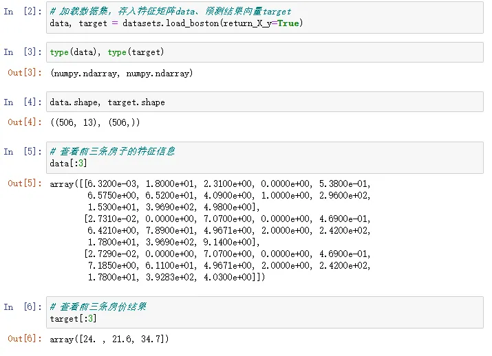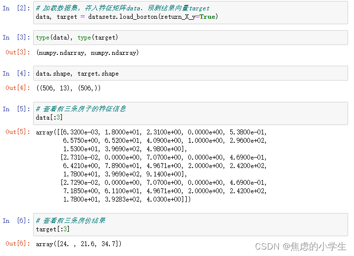 import numpy as np # 使用sklearn自带的数据集,这些数据集都是Numpy的形式 # 我们自己的数据,也可以处理成这种格式,然后就可以输入给模型 from sklearn import datasets # 用train_test_split可以拆分训练集和测试集 from sklearn.model_selection import train_test_split # 使用LinearRegression训练线性回归模型 from sklearn.linear_model import LinearRegression