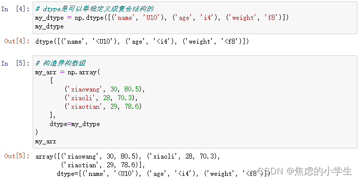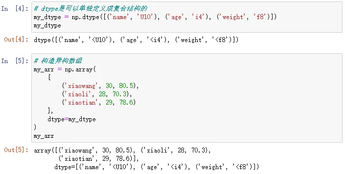 但是Numpy也可以记录异构数组,比如下面的数据: