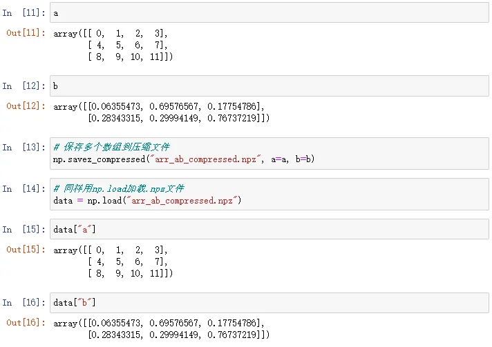 3. 使用np.savez_compressed和np.load保存和加载多个数组到压缩格式文件